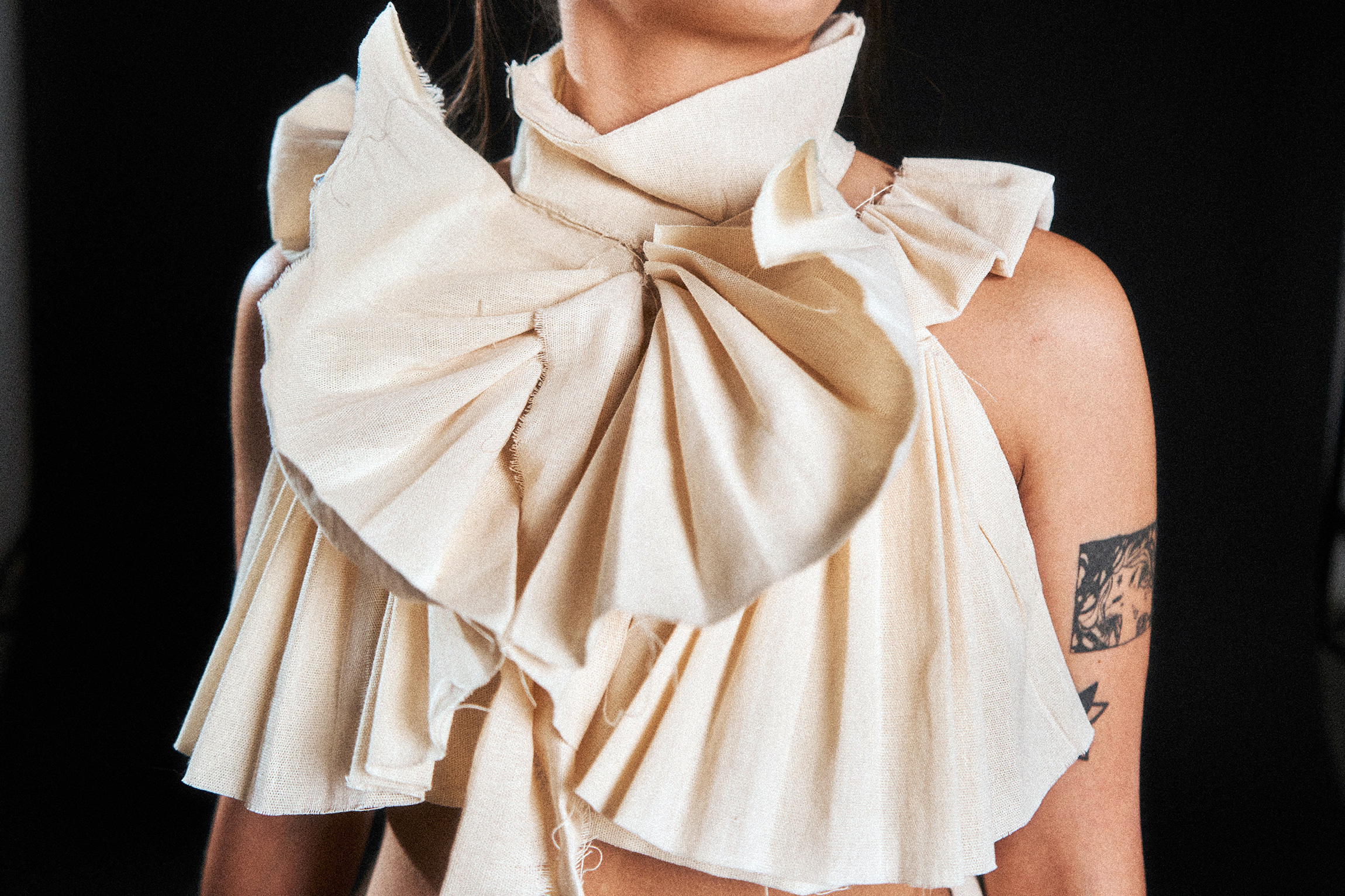 Andu Franco (2002, Michoacán, Mexico) is a visual artist whose work explores gender, tradition, and identity through textile, sculpture and wearable art with a particular focus on the female equestrian performance known as escaramuza. She studied at the Escuela de Iniciación Artística affiliated with INBAL and earned her Bachelor’s degree in Art and Design from UNAM, ENES Morelia.