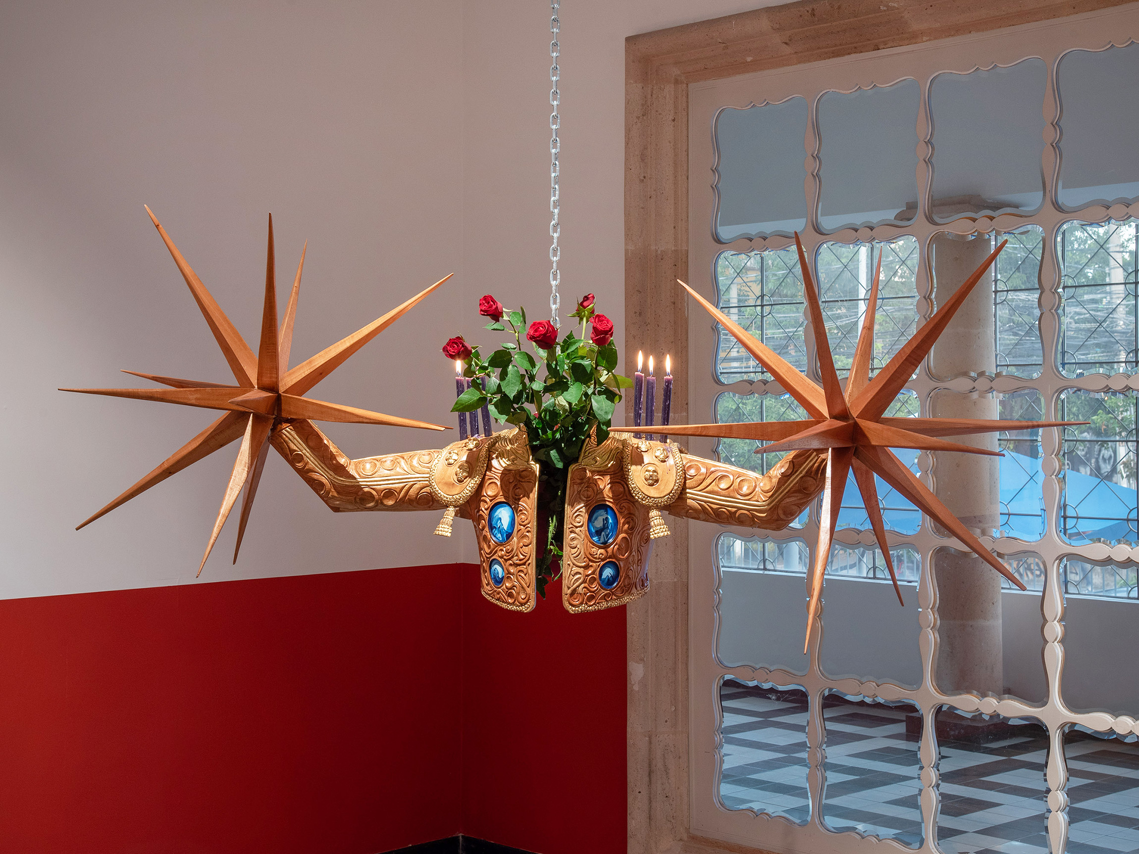 Napoleón Aguilera’s artistic practice thrives on the interplay between diverse materials, local nuances, and vibrant collaborations across multiple crafts—ranging from carved wood and blacksmithing to lapidary work in basalt and obsidian. More than technical exercises, his work serves as a field of experimentation where the local engages in dialogue with global imaginaries. He often employs strategies such as humor and double entendre to conceive projects that bring together worlds as disparate as cockfights, science fiction, fashion, or criminal slang. Aguilera takes deep pride in creating objects, drawings, and actions distinguished by both conceptual strength and meticulous detail. His practice seeks to unsettle the familiar, generating new visual narratives charged with critical and poetic energy.